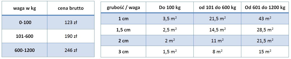 Cena uzależniona od wagi przesyłki bez względu na miejsce dostawy.